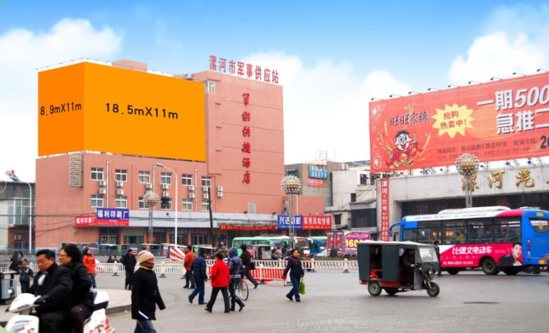 所在地区河南省>漯河市>源汇区 媒体地址人民路汽车站军供快捷酒店楼顶